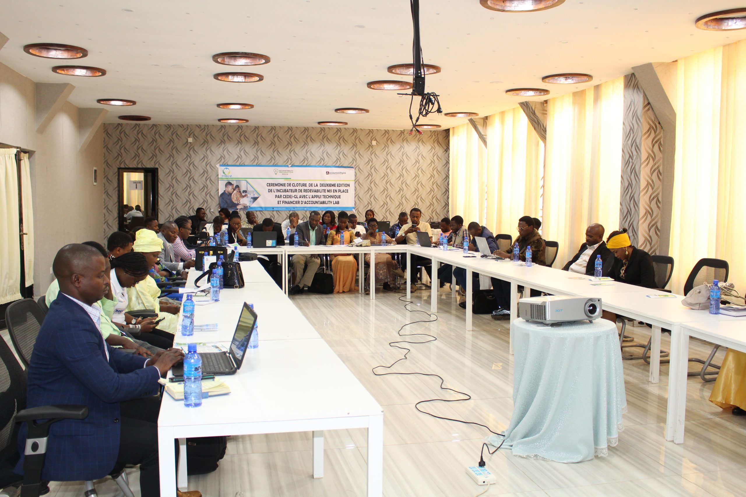 Après un accompagnement d’une année des accountapreneurs de la cohorte 2022 par CEDEJ-GL, il s’est tenu en date du 12 mai 2023 dans la salle PREMIUM de l’Hôtel Elizabeth de Bukavu en présence des représentants des organisations non gouvernementales locales, nationales, internationales, des branches de la société civile, du Maire adjoint de la ville de Bukavu et du Ministre provinciale de l’Education, Jeunesse, Sport et Loisir, et des accountapreneurs des cohortes 2021, 2022 et 2023 la cérémonie de clôture de l’édition 2022 de l’incubateur de redevabilité dénommée « PITCH EVENT ». Cette cérémonie a été ouverte par le Ministre Provincial de l’éducation, jeunesse, sport et loisir qui a loué le travail accompli par CEDEJ-GL avec son partenaire Accountabilty Lab RDC dans l’accompagnement des jeunes entrepreneurs sociaux. Par cette occasion il a souligné les efforts que le gouvernement provincial met en place pour accompagner le programme mis en œuvre par la société civile de construire des outils durables et efficaces pour la responsabilité, la redevabilité, la participation et l’impact social dans leurs communautés.